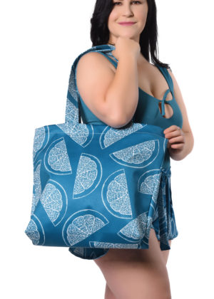 A bolsa é confeccionada em tecido neoprene 100% poliéster com duas camadas de entretela, a estampa é sublimática. Seu tamanho aproximado 46 cm de largura X 40 cm de altura X 15 cm de profundidade, sua alça total tem 80 cm e 40 cm tamanho das alças ao meio, seu peso aproximado é de 350 gramas. Tem seu zíper destacável, que possibilita a abertura total da bolsa, possui também três compartimentos externos (Indicados para água, protetor solar e chinelos).