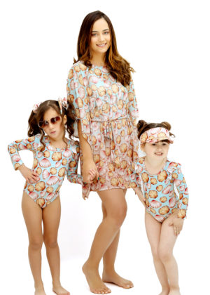 O combo Kaftan Curto + 2 Maiôs Infantil traz o estilo e elegância, seja no campo, na praia, na piscina, em suas viagens em família, festas, seja qual for à ocasião, todas as peças com a mesma estampa.